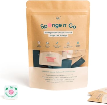 Sponge n' Go: Mini Travel Dish Soap & Sponges | Eco-Friendly, Soap-Infused, Single-Use Cellulose Compressed Sponges
