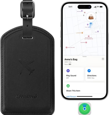 Luggage Tags Built-in Anti-Loss Tracker, Luxury Leather Luggage Tags for Suitcase, Travel Bags, Backpacks, Travel Organizer for Lost Baggage Prevention (Black)
