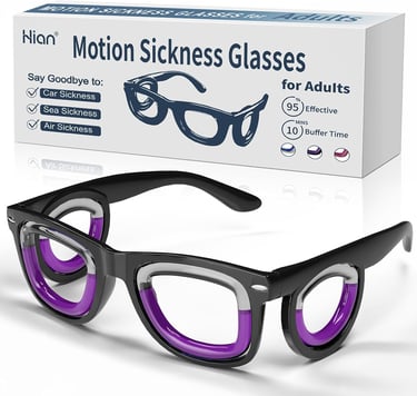Hion Adult Anti- Motion Sickness Smart Glasses, Ultra-Light Portable Nausea Relief Liquid Glasses, Carsickness Airsickness Seasickness Glasses, Kids Travel/Cruise Essentials(Black)