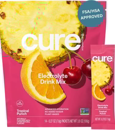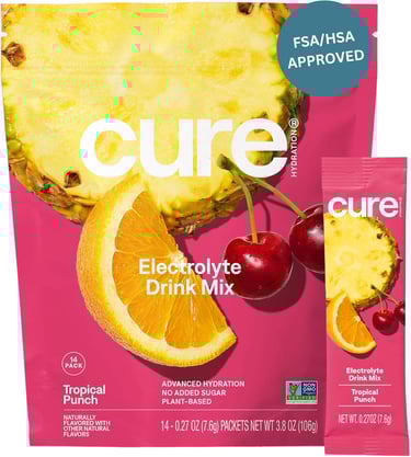 Cure Hydration | Plant-Based Electrolyte Drink Mix | No Added Sugar | FSA-HSA | Dehydration Relief Powder Made with Coconut Water | Non-GMO | Vegan