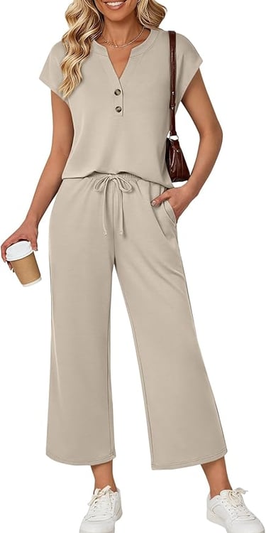 WIHOLL 2 Piece Sets for Women Casual Summer Travel Vacation Outfits Cap Sleeve Lounge Set