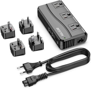 BESTEK Universal Travel Adapter 100-220V to 110V Voltage Converter 250W with 6A 4-Port USB Charging 3 AC Sockets and EU/UK/AU/US/India Worldwide Plug Adapter (Black)