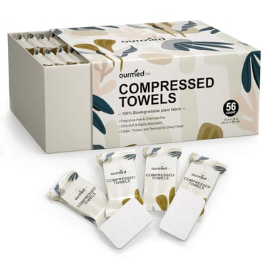 Ourmed Life Compressed Towel Tablets – Portable, Individually Wrapped Disposable Face Towels, Quickly Expand with Water, Soft & Lint-Free, 12‘’x10‘’