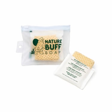 Nature Buff 2-Pack Biodegradable Soap Unscented Travel-Sized Camping Soap Bars -All-In-One Soap Bar and Washcloth (Includes Travel Case)