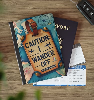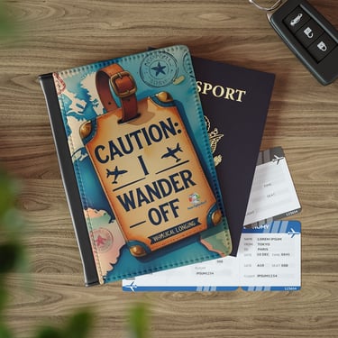 Caution: I Wander Off RFID Passport Cover | Travel Accessory, Gift for Travelers, Vacation Must-Have, Wanderlust Essentials, Jetsetter Item