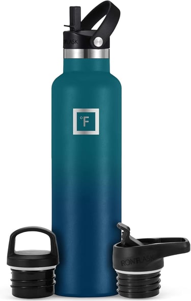 IRON °FLASK Camping & Hiking Hydration Canteens - 3 Lids (Narrow Straw Lid) Leak Proof Vacuum Insulated Stainless Steel - Hot & Cold Double Walled - Dark Night, 24 Oz