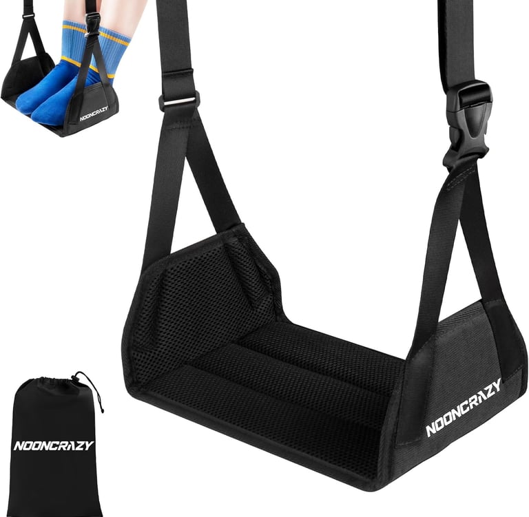 Airplane Foot Hammock, No Collapse Foot Rest for Plane Travel with Extended Adjustment Strap, Portable Foot Hammock with Thickened Foam